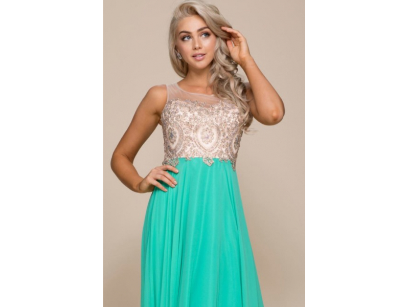 Pokud hledáte šaty pro svou družičku, jistě Vás nadchnou nové šaty Dress long turquoise. Šaty jsou ušity ze šifonové sukně a v oblasti hrudi jsou umístěny barevné kamínky na zlatavé krajce. Střih tohoto typu je žádaný pro své univerzální využití.