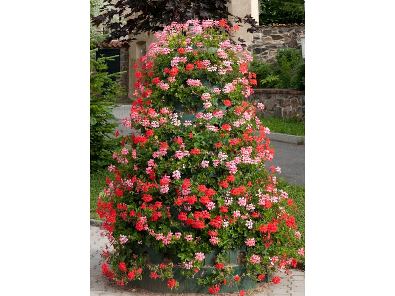 Polyetylénová dutá konstrukce pro květinovou pyramidu výšky 2, nebo 1,4 nebo 0,8 m složená ze čtyř částí (podstavec a 3 sadební patra). Vnitřní zavlažovací sada je doplňkem. Lze sázet rostliny všeho druhu.