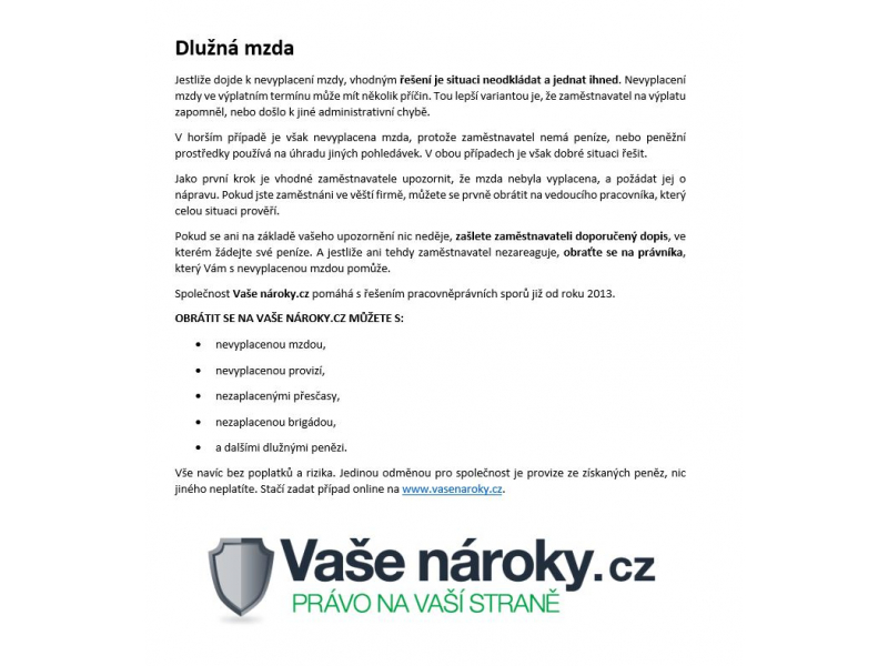 Stačí zadat případ online a o vše se postaráme. U nás navíc za právníka neplatíte. Podívejte se na www.vasenaroky.cz.