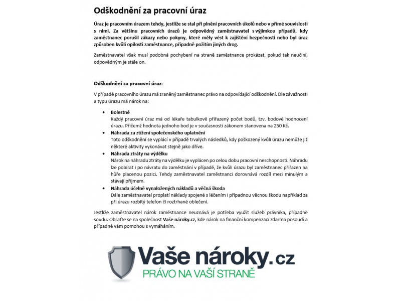 Stal se vám pracovní úraz, ale zaměstnavatel odmítá hradit odškodnění? Pomůžeme!