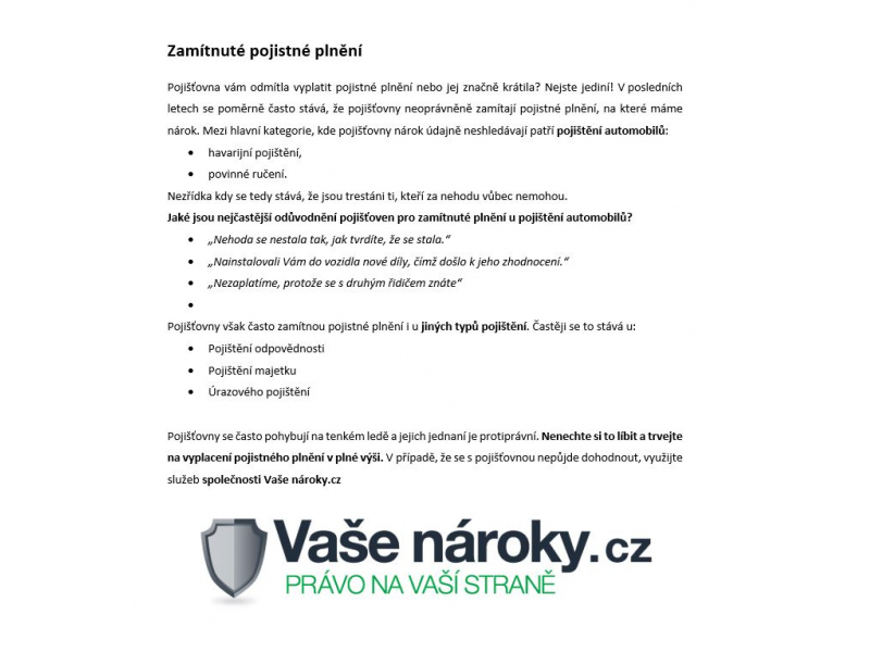 Odmítla vám pojišťovna vyplatit peníze, na které máte nárok? Nenechte si to líbit a braňte se. Pomůžeme vám!