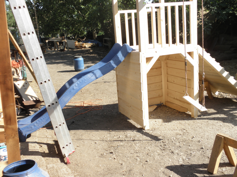 Obsahuje: klouzačku, 2x houpačka, garáž nebo pískoviště