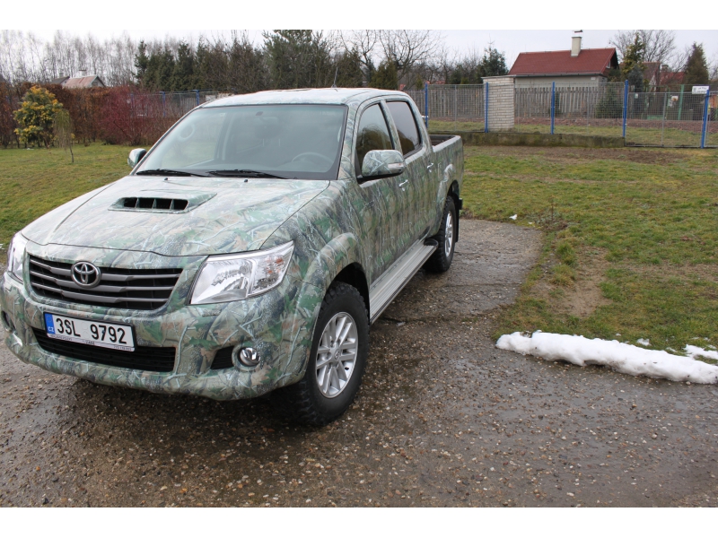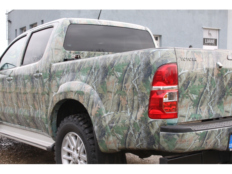 Auto bylo na zakázku nově polepeno, aby působilo v lese jako kamufláž a zvěř se nebála.