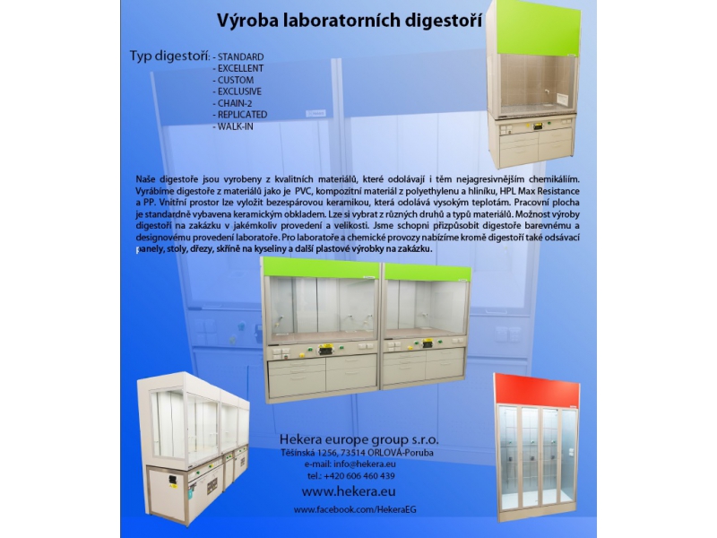 Digestoře určeny do chemických laboratoří i školních institucí. Designové provedení, rozměry a materiály na míru.