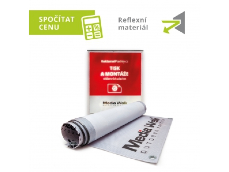 Reflexní reklamní plachta má odrazový materiál (světlo) a funguje podobně jako dopravní značení v noci. U tohoto typu plachty jsme omezeni šířkou materiálu, můžeme tisknout v jednom kuse (bez sváru) jen do šířky 1,25 m a 50 m délky.