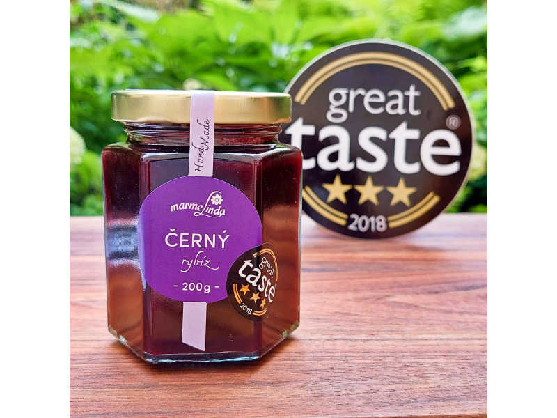 Hrubě pasírovaný černorybízový džem je plný vášně. Po otevření se rozlije dokonalá vůně černého rybízu. Neobsahuje zrníčka, je příjemný na roztírání a hodí se dokonale i do jogurtů. Je nakyslý, pikantní. OCENĚNO GREAT TASTE ˙˙˙