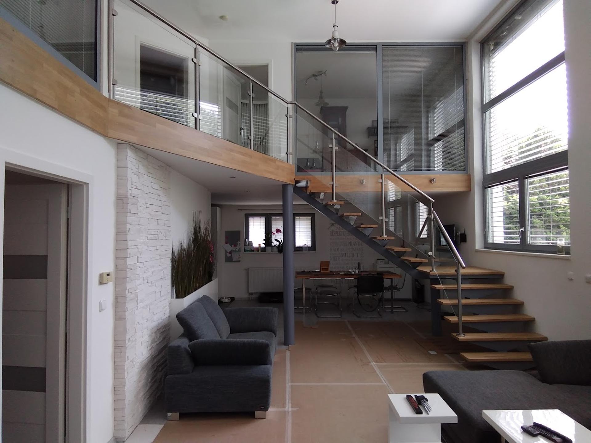 skleněná zábradlí v interiéru