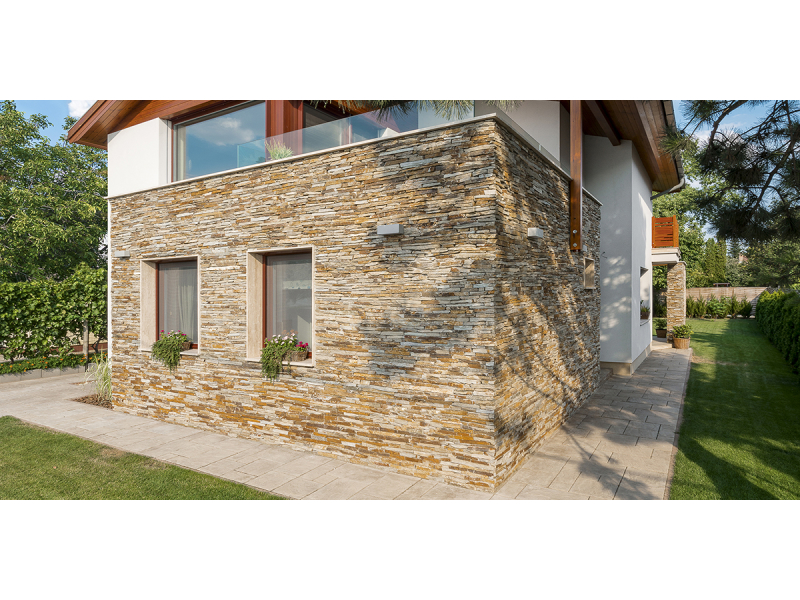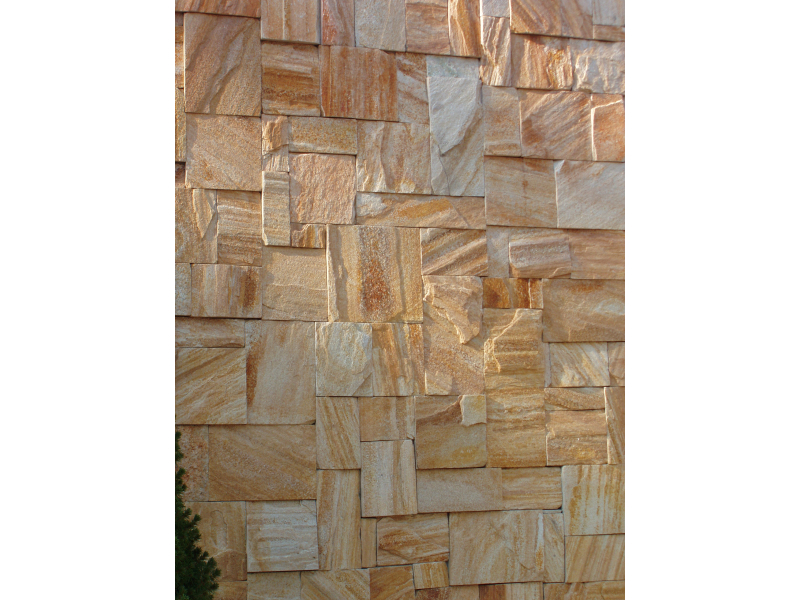 Žluté (pískové) kamenné obklady Gneis jsou netvarované přírodní kameny, které se používají na obložení domů, administrativních i firemních budov, pensionů, hotelů, obložení garáží, sloupů atd.