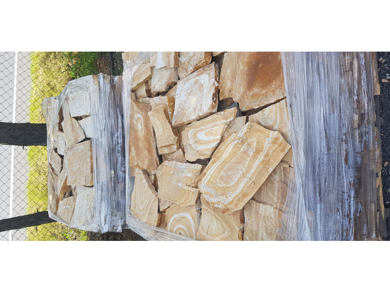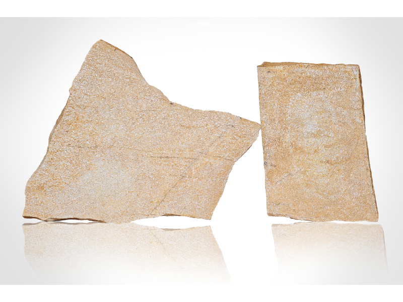 Přírodní kamenná netvarovaná dlažba z Balkánské ruly Gneis - barva žlutá, tloušťka 2-4 cm. Unikátní stylový přírodní kámen je vhodný na dlažbu podlahy do interiéru i exteriéru v domech i větších budovách.