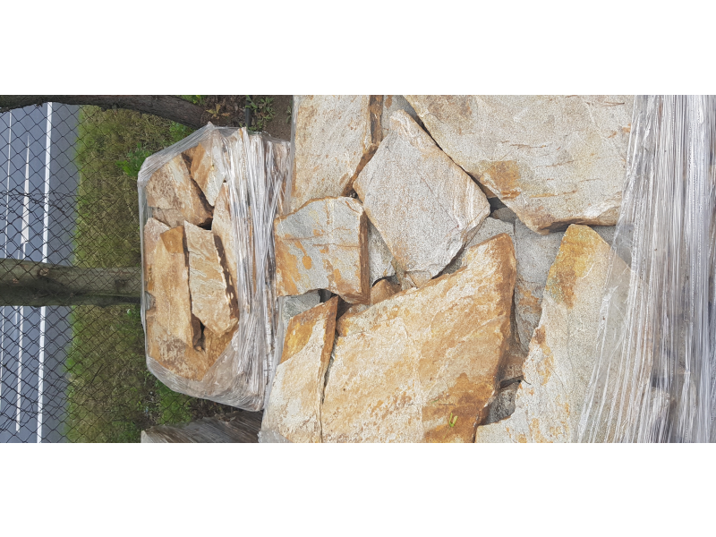 Přírodní kamenná netvarovaná dlažba z Balkánské ruly Gneis - barva béžová, tloušťka 2 - 4 cm. Unikátní stylový přírodní kámen je vhodný na dlažbu podlahy do interiéru i exteriéru v domech i větších budovách.