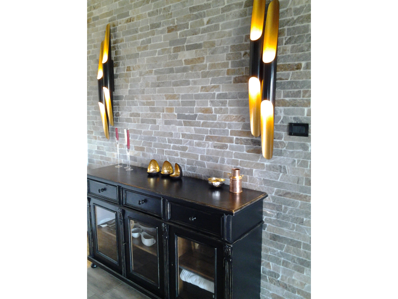 Šedé metalické kamenné obkladové desky jsou vhodné na vnitřní i venkovní obklady do interiéru i exteriéru. Desky se dají použít se dají na budovy, obložení fasády domů a budov i stěn interiérů a místností.