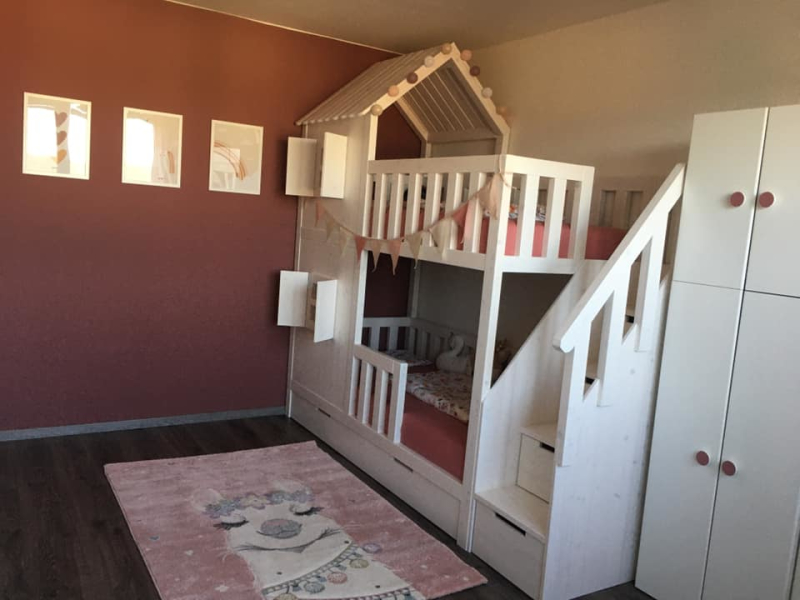 Kvalitní postel z masivu pro 2 nebo více dětí. S možností přidělání 3. lůžka či úložných prostor. Bytelná - včetně dřevěného roštu s nosností každého lůžka cca 150kg. Ručně opracovaná i natřená, s osobním dovozem a montáží až k Vám domů.
