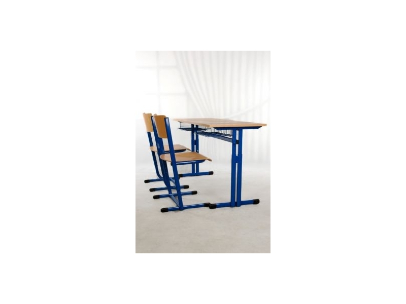 Žákovská lavice a židle je vyrobena z plochooválu. Deska lavice má rozměr 1300 x 500 mm. Sedák a opěrák židle je vyroben z přírodní bukové překližky. Dvoumístná lavice má dva samostatné odkládací drátěné košíčky. Hrana desky je ABS nebo gumová narážecí.