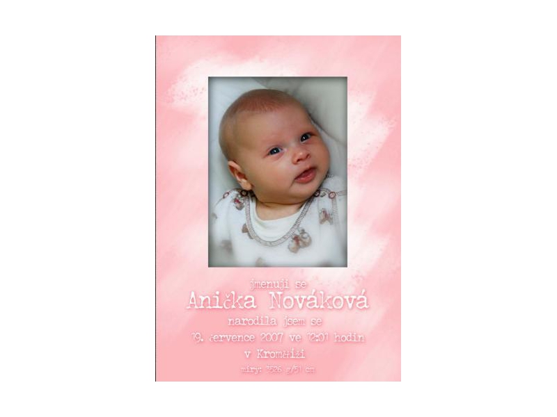 Proto můžete mít první fotografie Vašeho děťátka v originálních paspartách jež zároveň nesou i první údaje o Vašem drobátku. Text je možné upravovat a měnit dle přání rodičů.