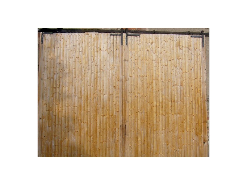 Pro vrata používáme kování tzv. posuvné na kolejnici, vrata zavěšena na kolečkách a běžná vrata, rozdělená na dvě části s klasickými panty.