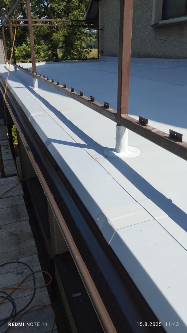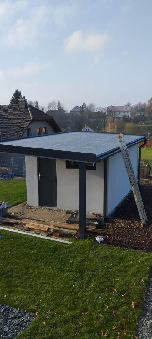 Hydroizolace střechy z PVC materiál dekplan. Garáže pergoly balkony stavby.