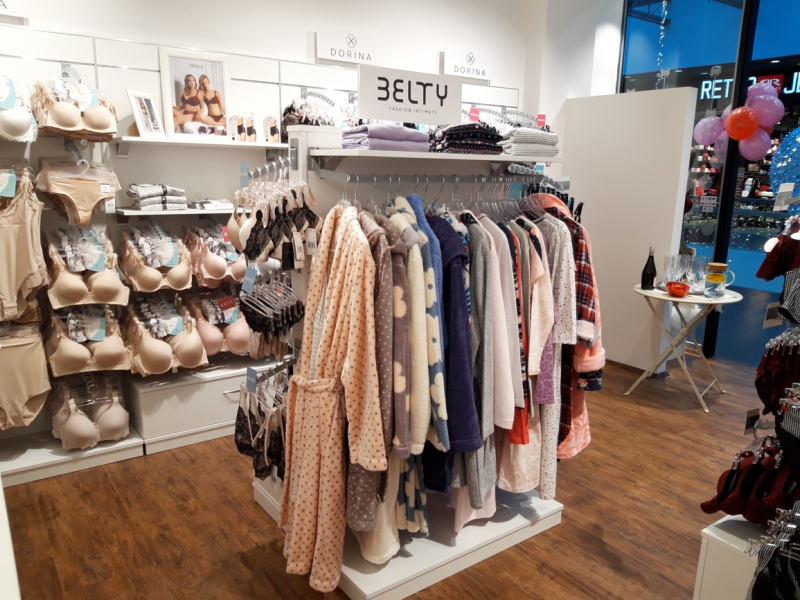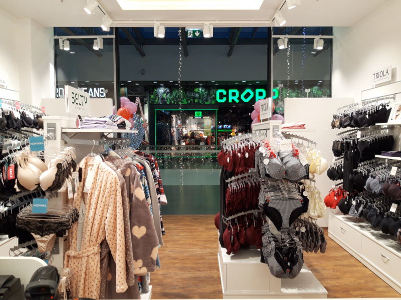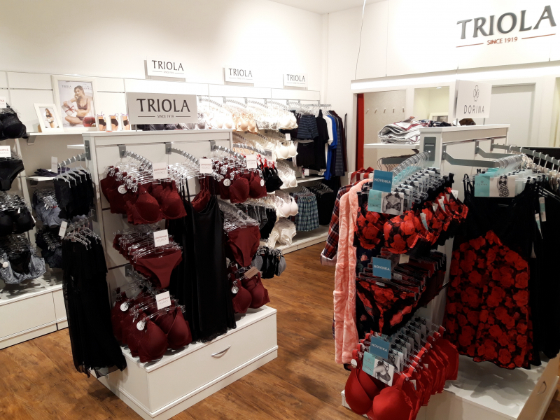 Obchodní nábytek pro značkovou prodejnu Triola je vyroben z lamina. Jedná se o modulární systém vybavení obchodu s využitím systému drážkovaných panelů (Slat Wall) a originálního příslušenství.