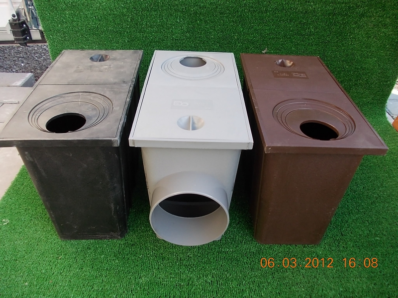 Okapová vpusť,v barevném provedení černá,šedá,hnědá. vstup 75-125 mm, vývod svislý nebo boční 110.