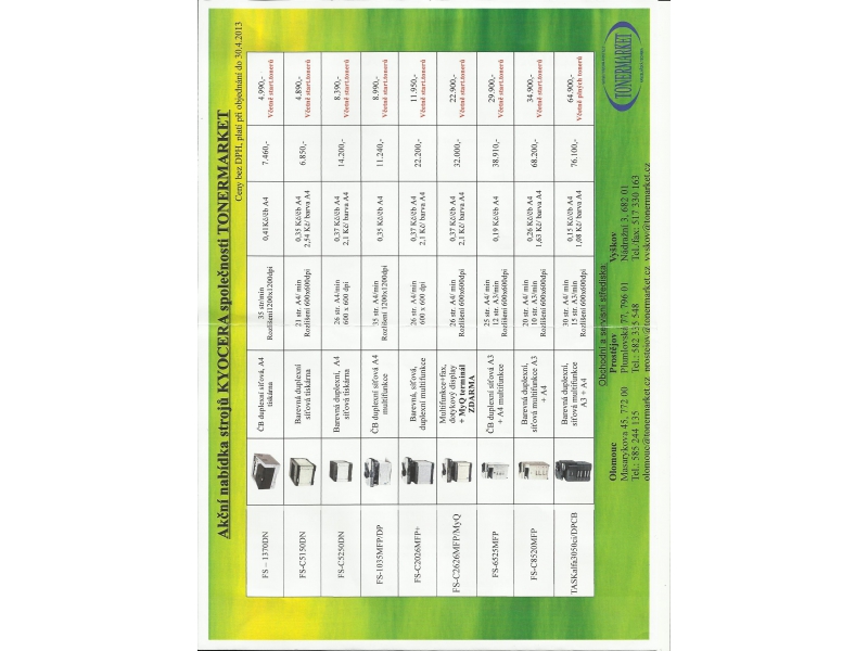 Společnost TONERMARKET vznikla v roce 2001 odkoupením firmy RS Reproservis s.r.o. a jako nastupující firma se snaží o poskytování ještě kvalitnějších služeb. Jedná se o obchodní a servisní společnost v oblasti kancelářské techniky, která zastupuje a úspěšně distribuuje kopírovací stroje, faxy, počítačové systémy a data/video projektory jako jsou např. DEVELOP, MINOLTA, TOSHIBA, LANIER, RICOH, SHARP, CANON, LEO, REX-ROTARY, A+K, PANASONiC.