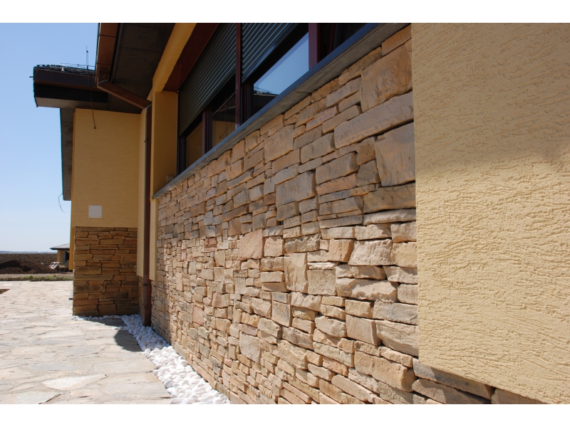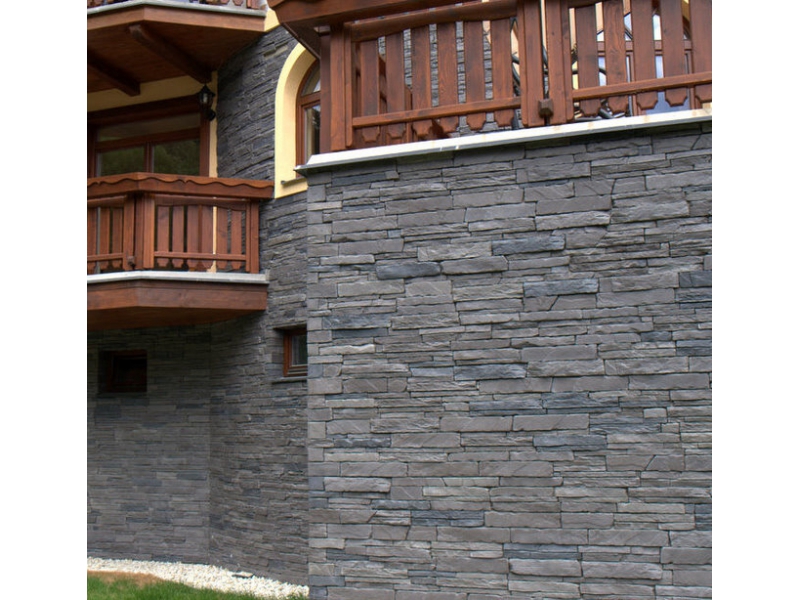 Vodorovně skládaný umělý kámen s přírodním kouzlem nahrubo štípaného kamene. Tento fasádní obklad v sobě kombinuje užší a širší kameny, které se aplikují na sraz s minimální spárou a vytváří tak kouzlo zdi postavené tzv. „na divoko“ .