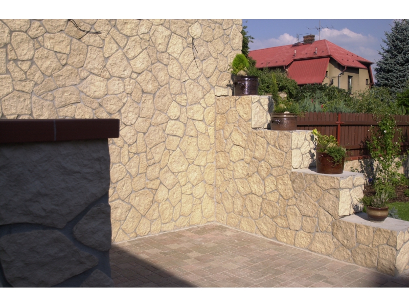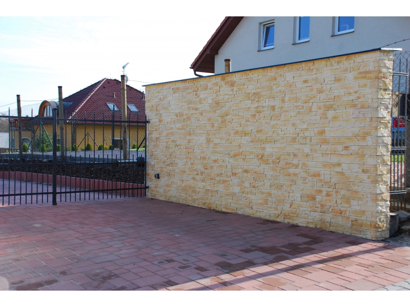 Umělý kámen, znázorňující nepravidelné pískovcové placáky s charakteristicky štípaným povrchem. Tento umělý pískovec se dodává namíchaný z kamenů nepravidelných velikostí, zaručujících tradiční přírodní vzhled.Doplňkem jsou rohy ve dvou velikostech.