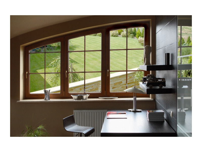 Zaoblené, vypouklé tvary rámů křídel i zárubně