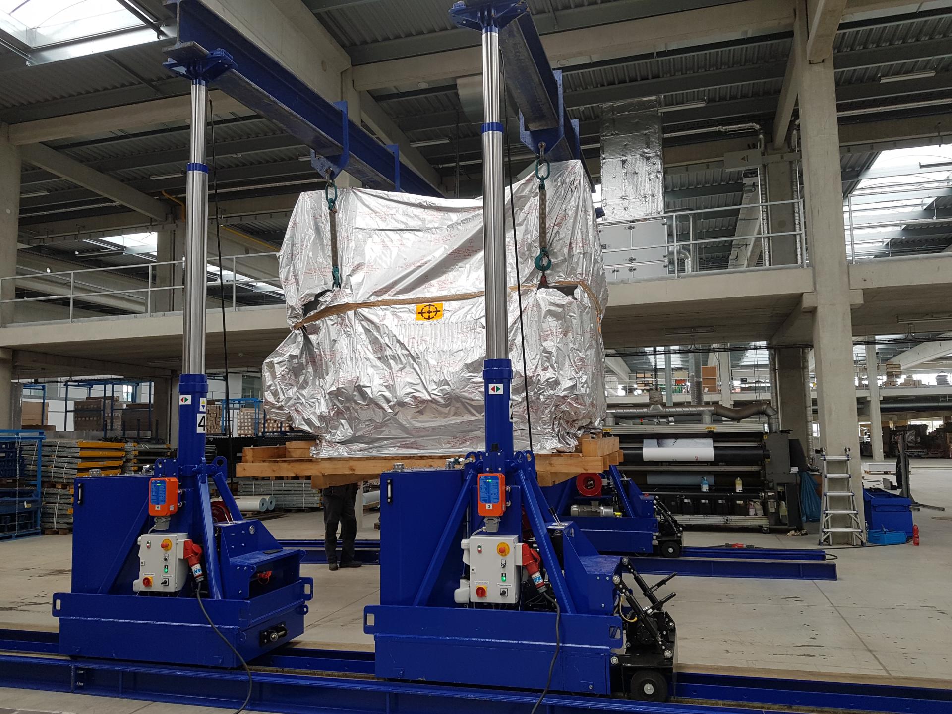 Stěhování těžkých břemen pomocí hydraulického systému Lift Systems.