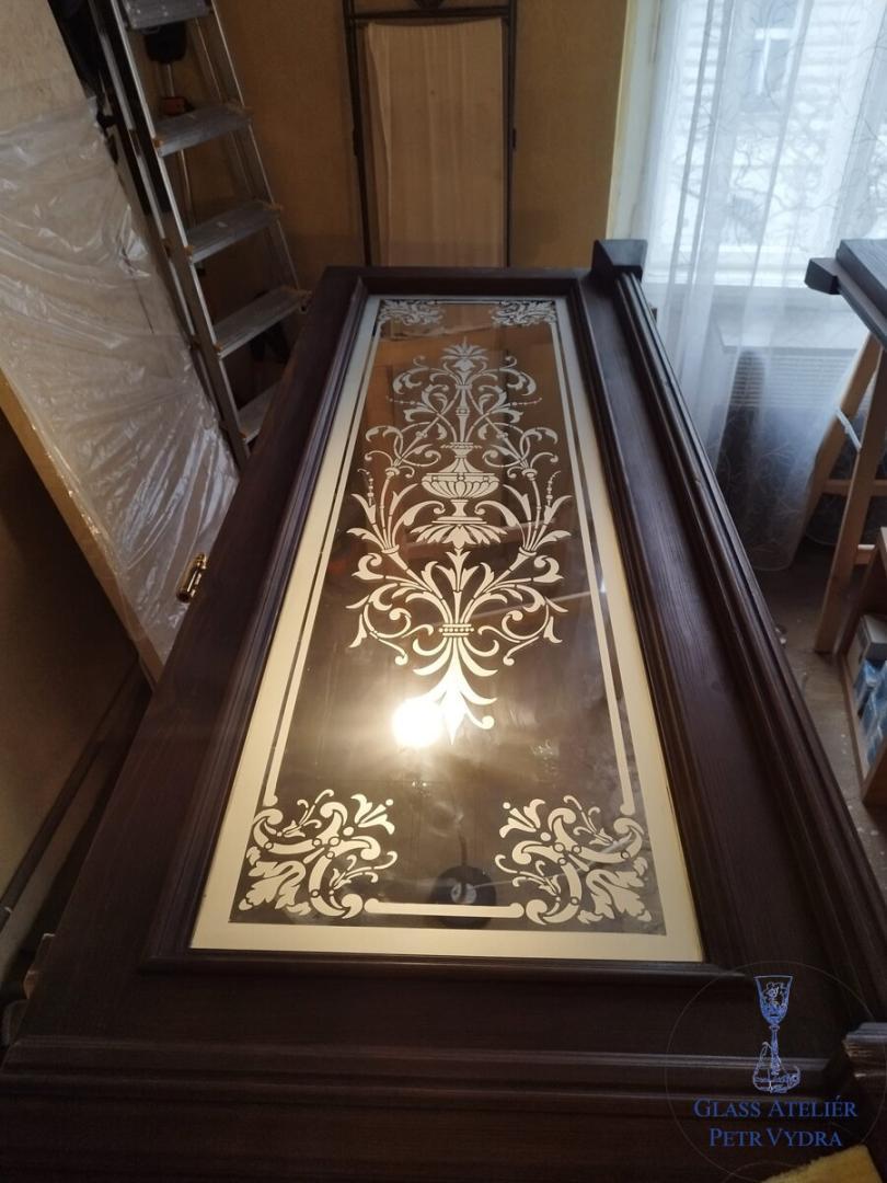 Pískujeme skleněné výplně a tabulky do dveří, oken a zrcadel, desky stolů, náhrobní desky, prosklené plochy a ostatní skleněné výrobky. Můžete nám poslat váš požadavek, rozměr, motiv a my vám pošleme cenovou nabídku a po schválení ceny zašleme před výrobou náhled ke schválení. Je možné také vaše skleněné dveře okna, nebo zrcadla oblepit pískovací folií která nahrazuje pískované sklo. Na pískovací folii můžeme vyřezat vámy vybraný motiv.
