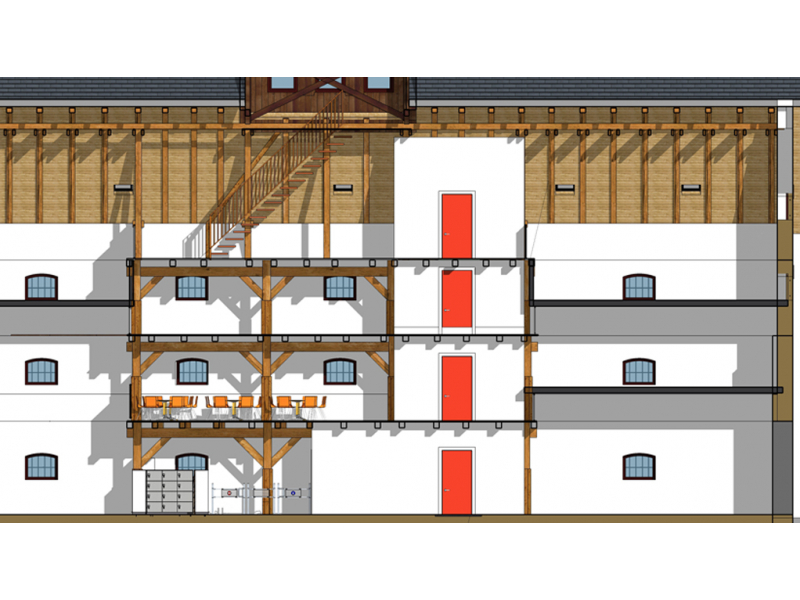 Úpravy objektu bývalé zámecké sýpky. Samostatné etapy: podchycení a oprava střechy včetně zateplení, úpravy vnitřních dispozic s vlastní rekonstrukcí, instalace herních prvků a vnitřního vybavení. Nezávislá přístavba se dvěma apartmány a wellness.