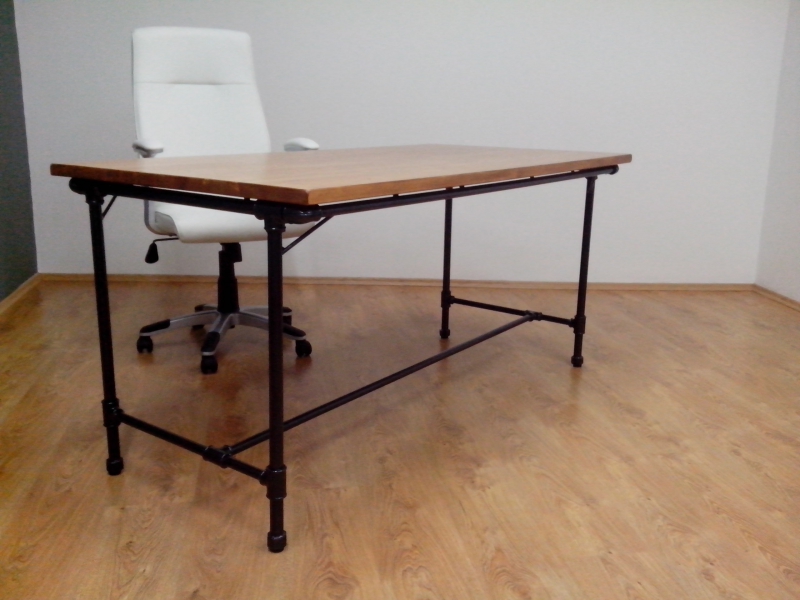 Kancelářský stůl je vyroben svařením trubek a ocelových kolen.