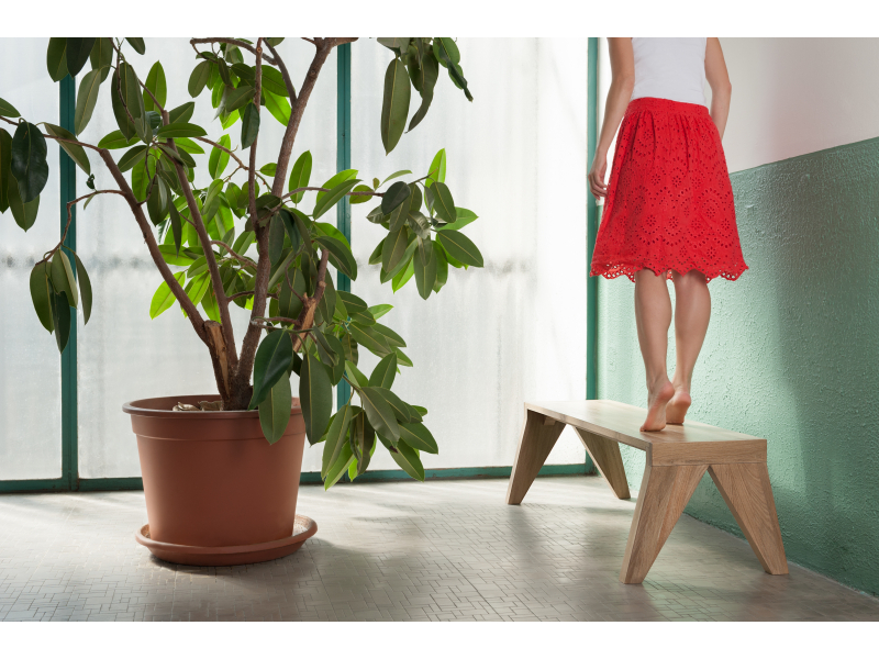 Hlavním poznávacím znakem této lavičky jsou nohy atypického tvaru kosoúhelníků díky těmto nohám je zajištěna bezkonkurenční stabilita celé lavičky.