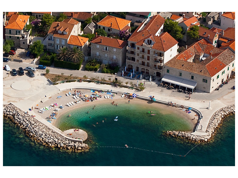 Hotel Adriatic se nachází přímo v centru letoviska Postira. Oblázková pláž s pozvolným vstupem do moře je od hotelu vzdálena pouhých 10 m. Pláž je soukromá a slouží jen pro klienty ubytované v tomto hotelu.