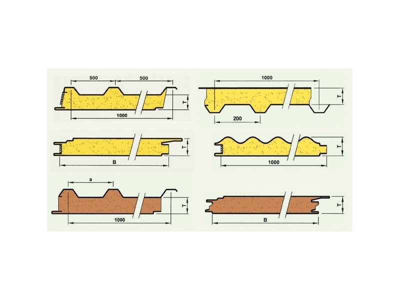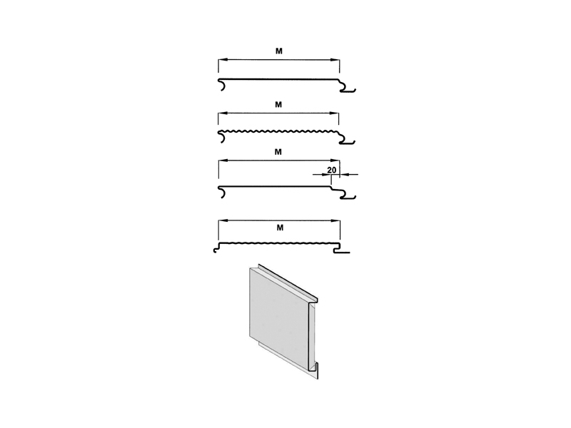 Sendvičové panely stěnové a střešní, se skrytým kotvením či přiznaným, různě druhy profilací, výplně polyuretan, PIR nebo minerál. Povrchová úprava standardně polyester 25mic, na vyžádání jiné.
