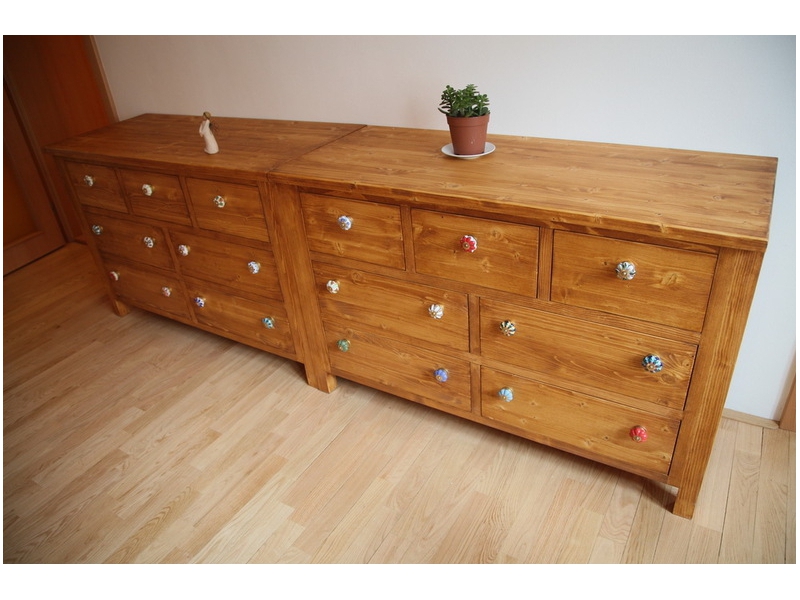 Masivní smrková komoda. Povrchová úprava barevným voskem. Rozměry 125 x 51,5 x 82cm. MOžnost volby úchytek a barevnosti komody dle přání zákazníka.