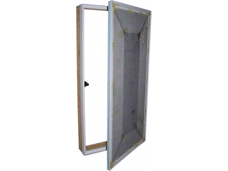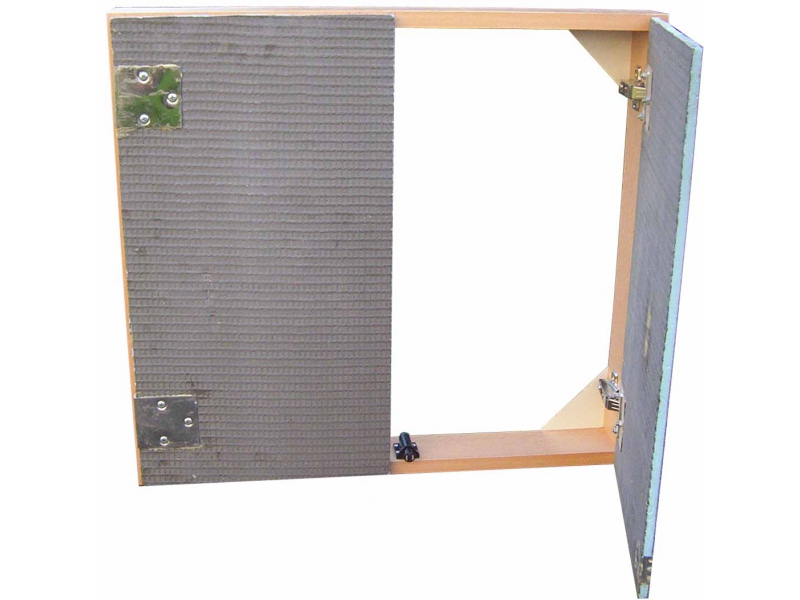 Dvířka z desky WEDI, která je z tvrzeného polystyrénu oboustranně zpevněného nalepenou tkaninou nebo OSB, se vyrábí pro obklad. WEDI deska tloušťky 10mm nebo OSB deska tloušťky 12mm je určena k přímému provádění obkladu. Na desky je možno také nanášet sádrové stěrky nebo omítky s použitím ukončovacího profilu po obvodě dvířek.