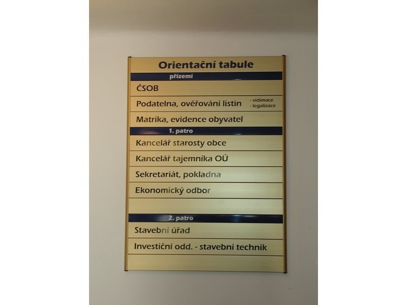 Budujeme orientační a informační systémy. Dodáváme městský mobiliář, směrovky, reklamní tabule, včetně polepu, instalace, servisu. Smaltované tabule. Vitríny, informační skříňky, autobusové čekárny, zastávky, plakátnice. Dveřní tabulky, štítky.Prodej sportovních pohárů, trofejí a medailí.