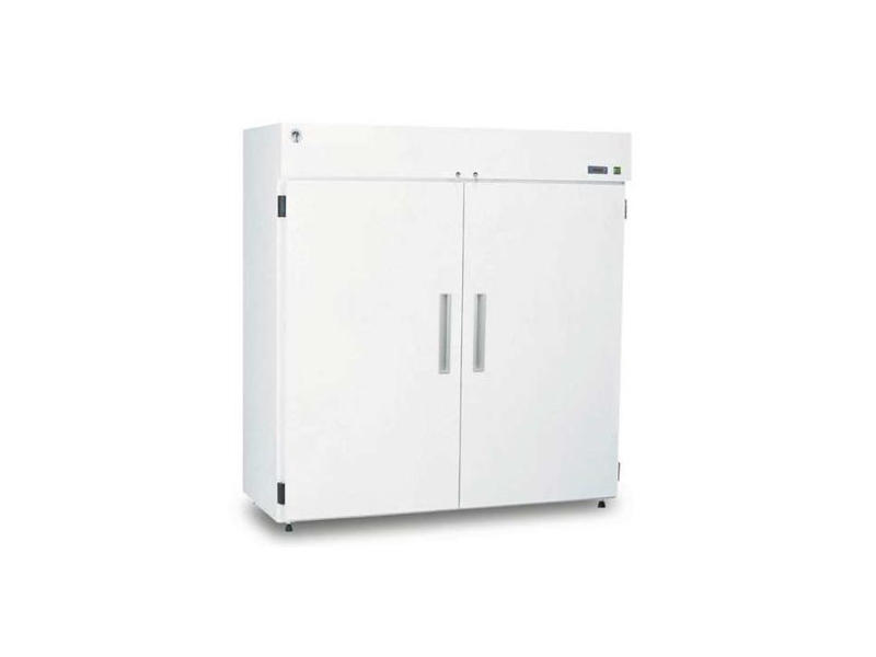chladicí skříň o obsahu 1400 litrů, v provedení bílý lak, izolace o tloušťce 50 mm, digitální termostat Eliwell, kompresor Danfoss, automatické odtávání, samouzavíratelné dveře se zámkem, 10 komaxitovaných roštů, 20 vodicích lišt