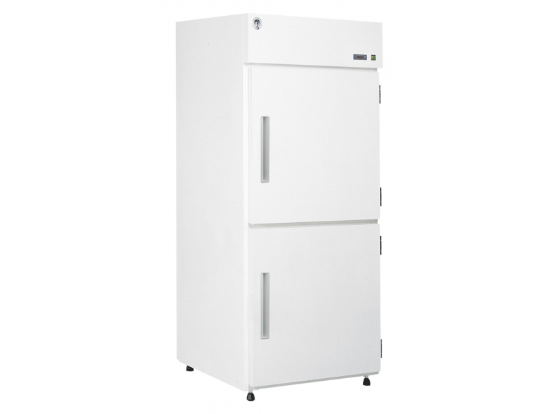 korpus zvenku v provedení bílý lak,vnitřní část z mačkaného Al, izolovaný ekologickou polyuretanovou pěnou o tl. 50 mm, elektronický termostat Eliwell s ukazatelem teploty, kompresor Danfoss, automatické odtávání,ventilátorové nebo statické chlazení