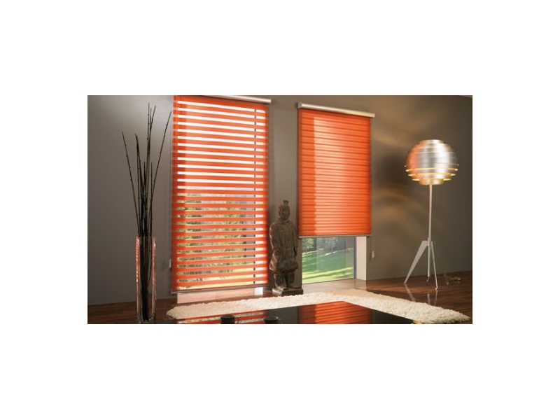 Moderní stínicí a dekorativní prvek, který v sobě spojuje praktičnost látkové rolety s přirozenou lehkostí záclon. Látka se skládá z 0,8 cm vysokých pruhů barevné tkaniny a 0,8 cm vysokých pruhů průhledné síťové textilie, které se navzájem střídají. TWIN efekt vzniká protiběžným posouváním látky ve dvou vrstvách nahoru či dolů. Látku, která se navíjí na hřídel uloženou v horním krycím boxu pomocí řetízku, můžeme kdykoliv zastavit v jakékoliv poloze, takže máme možnost volby mezi úplným, nebo jen částečným zastíněním. Tkaniny jsou ze 100% polyesteru, který odpuzuje prach a zabraňuje znečištění. Řetízek, horní hliníkový box i spodní závaží jsou v barvě bílé, elox, sv. zelená, krémová a sv. hnědá.