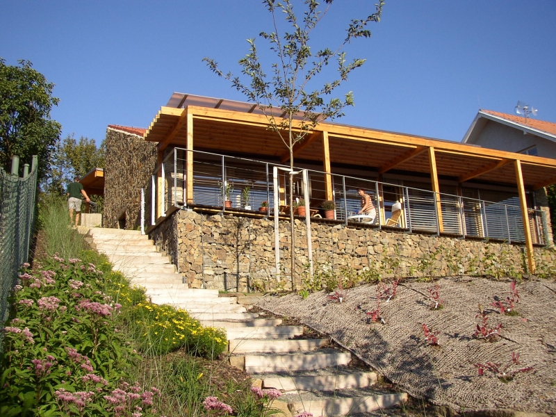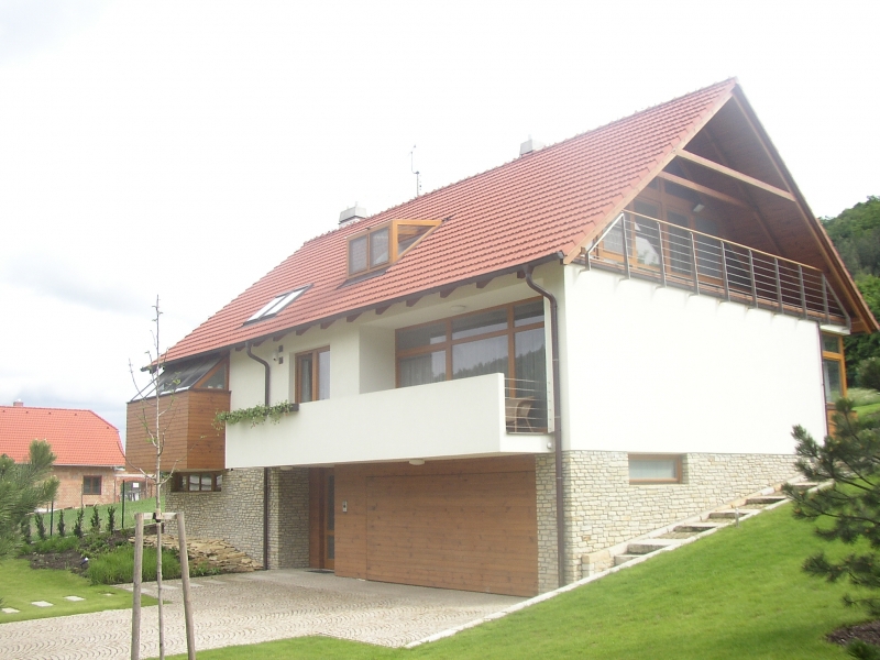 Budova je navržena dvoupodlažní, částečně zapuštěná do svahu. Hmotu domu tvoří jednoduchý kvádr s pultovou střechou sledující sklon terénu. Jednoduchá až strohá hmota je doplněna v horní části lehkým dřevěným garážovým přístřeškem, obytnou terasou.