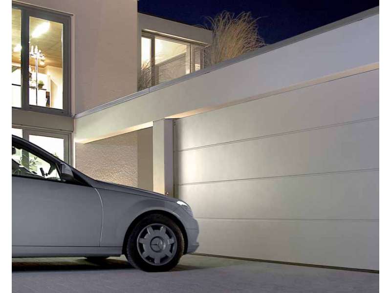 Přednostní těchto vrat je jejich praktická konstrukce. Zůstává tím volný prostor před vraty a navíc i u stropu garáže. Vrata jsou vyrobena z hliníku, v bílém nebo v barevném provedení. Standardně osazena pohony.